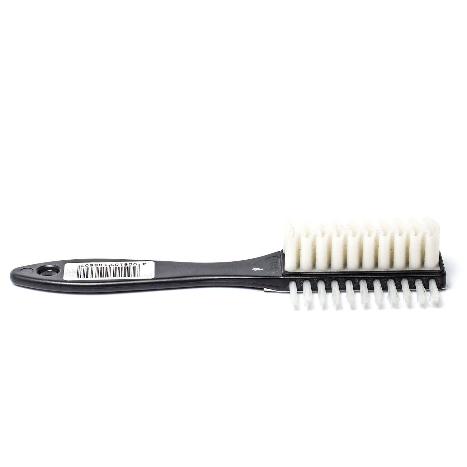 Curata intens cu ajutorul periilor de plastic si alama. Partea laterala de cauciuc se foloseste pentru zonele greu accesibile si penru cusaturi. Suport de plastic negru, cu maner.